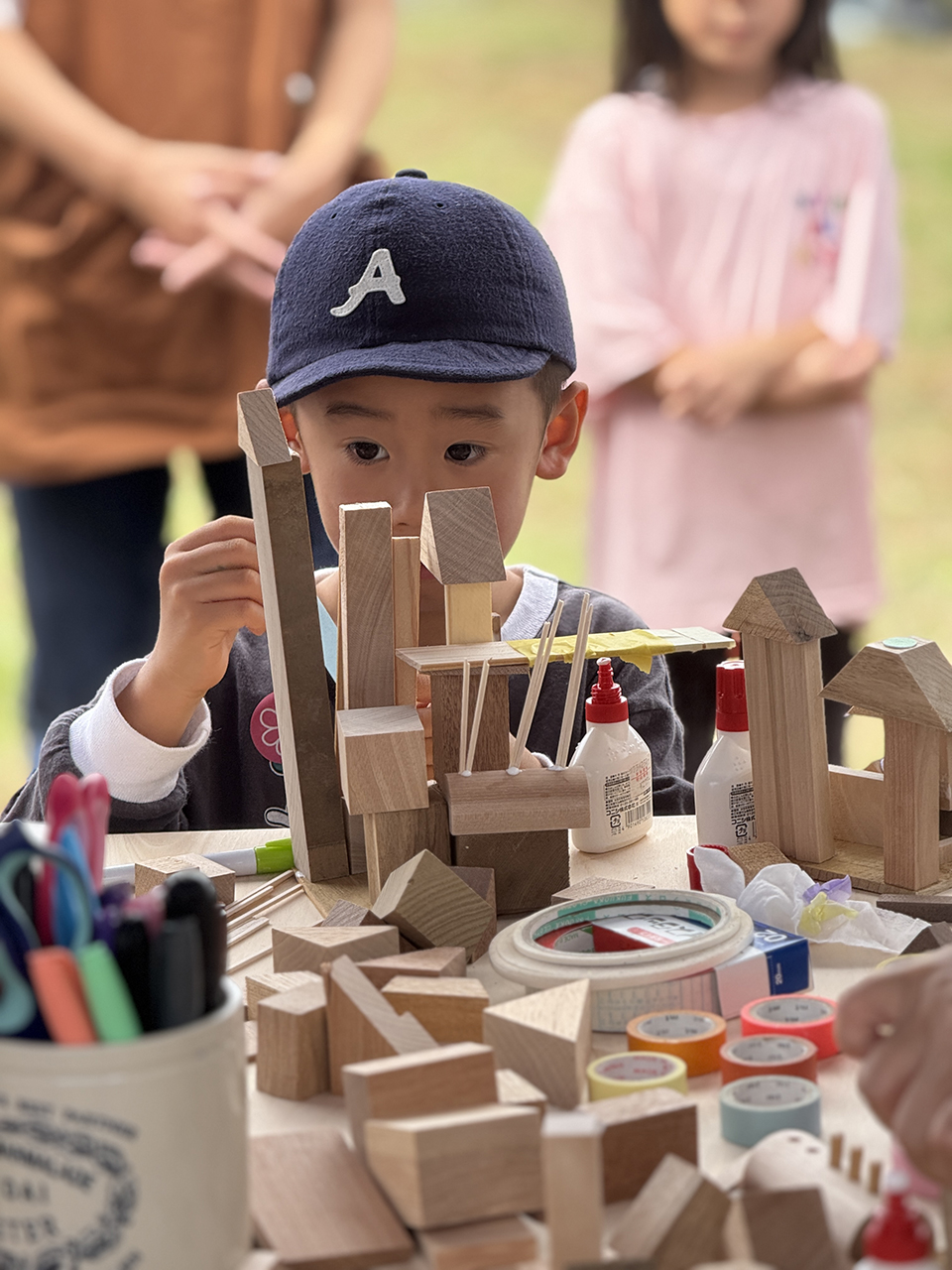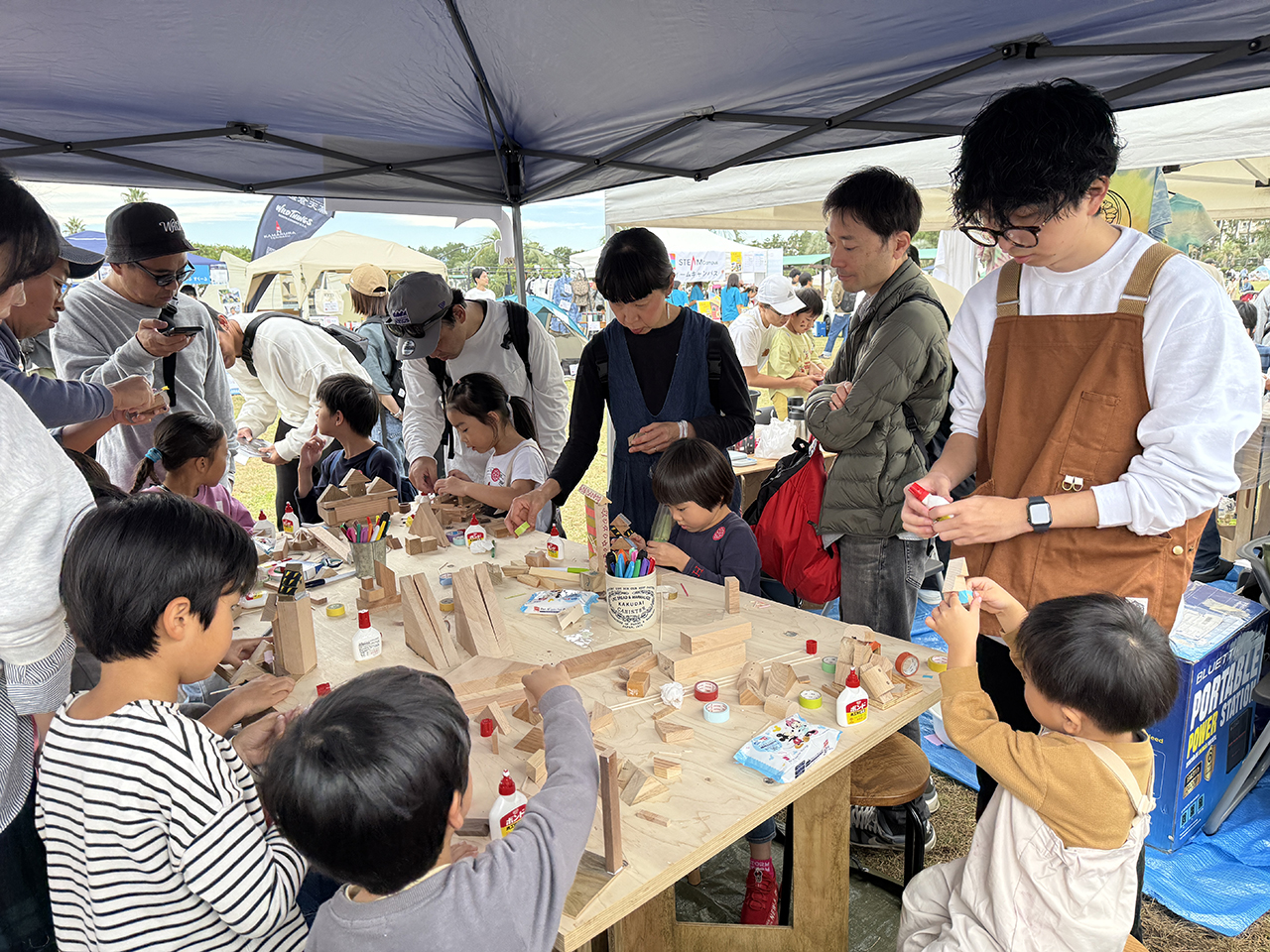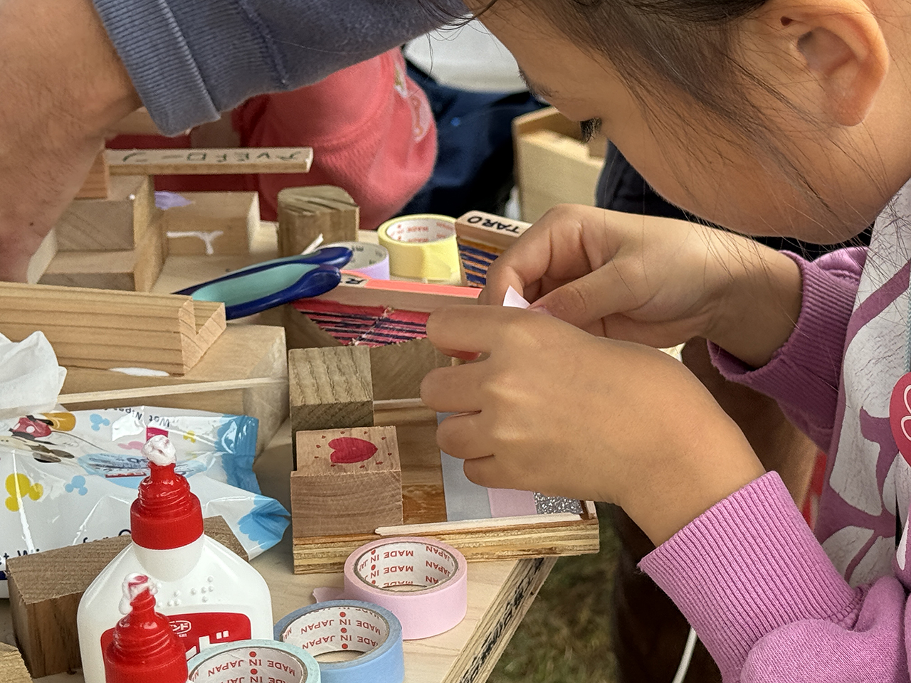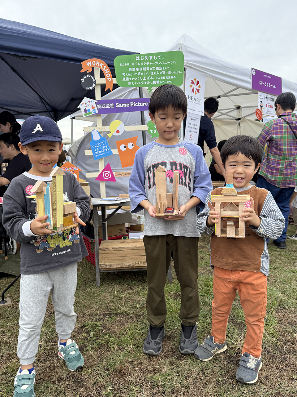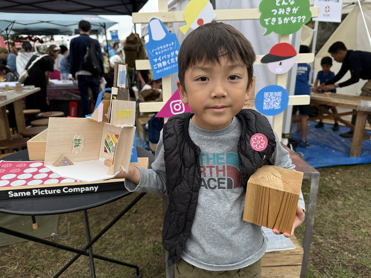 2日目もたくさんのキッズたちが参加してくれたおかげで、準備していた端材(積み木の材料)はすべて使い切り!本来なら捨てられてしまう端材が、子どもたちの手で素敵な作品へと生まれ変わりました。