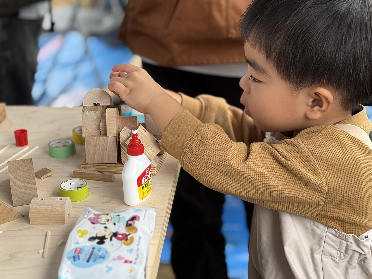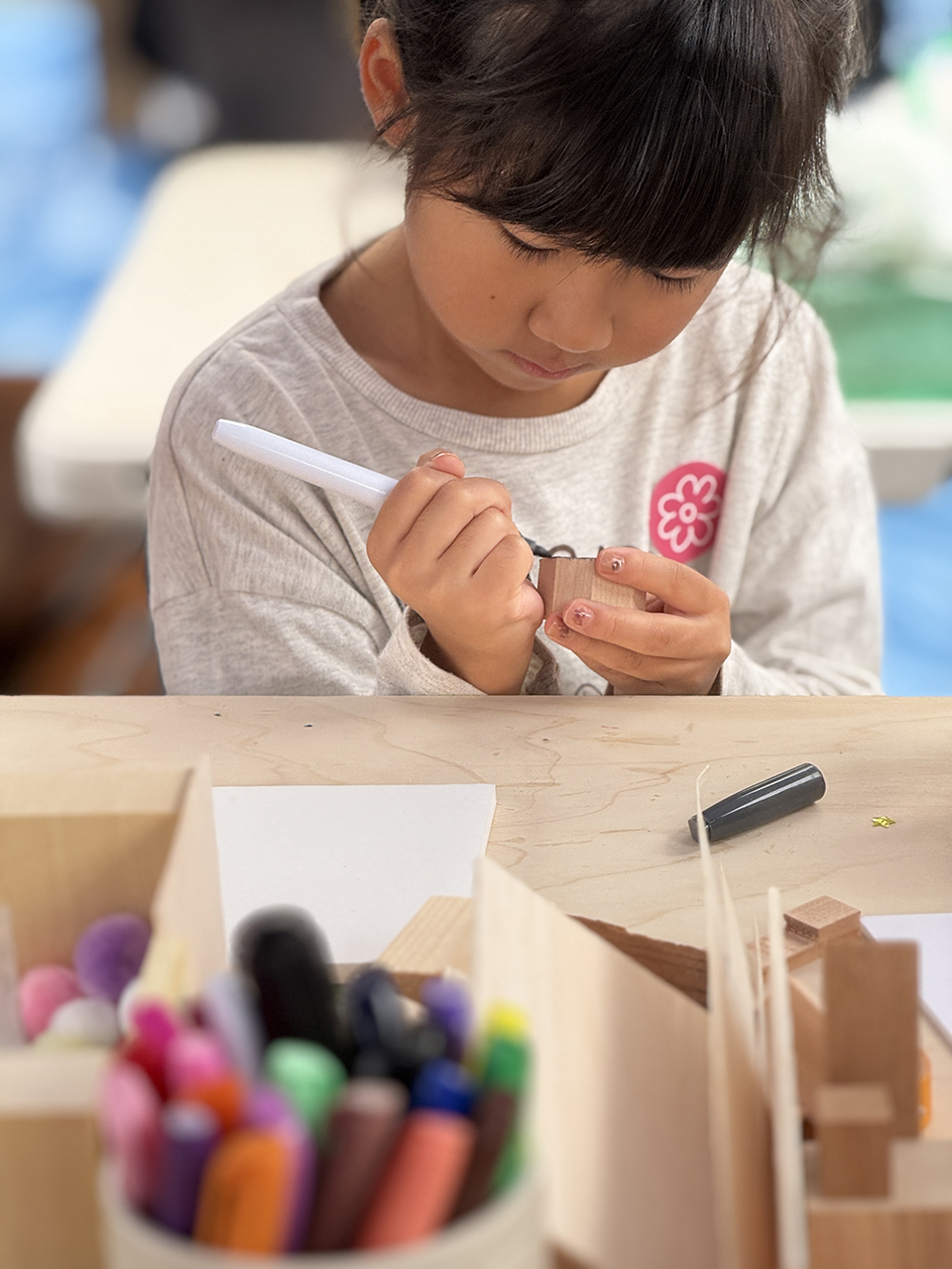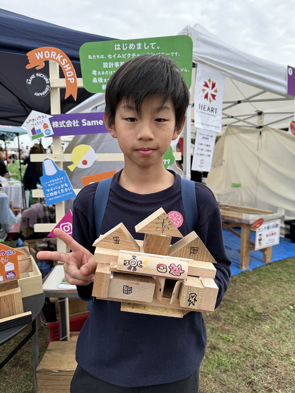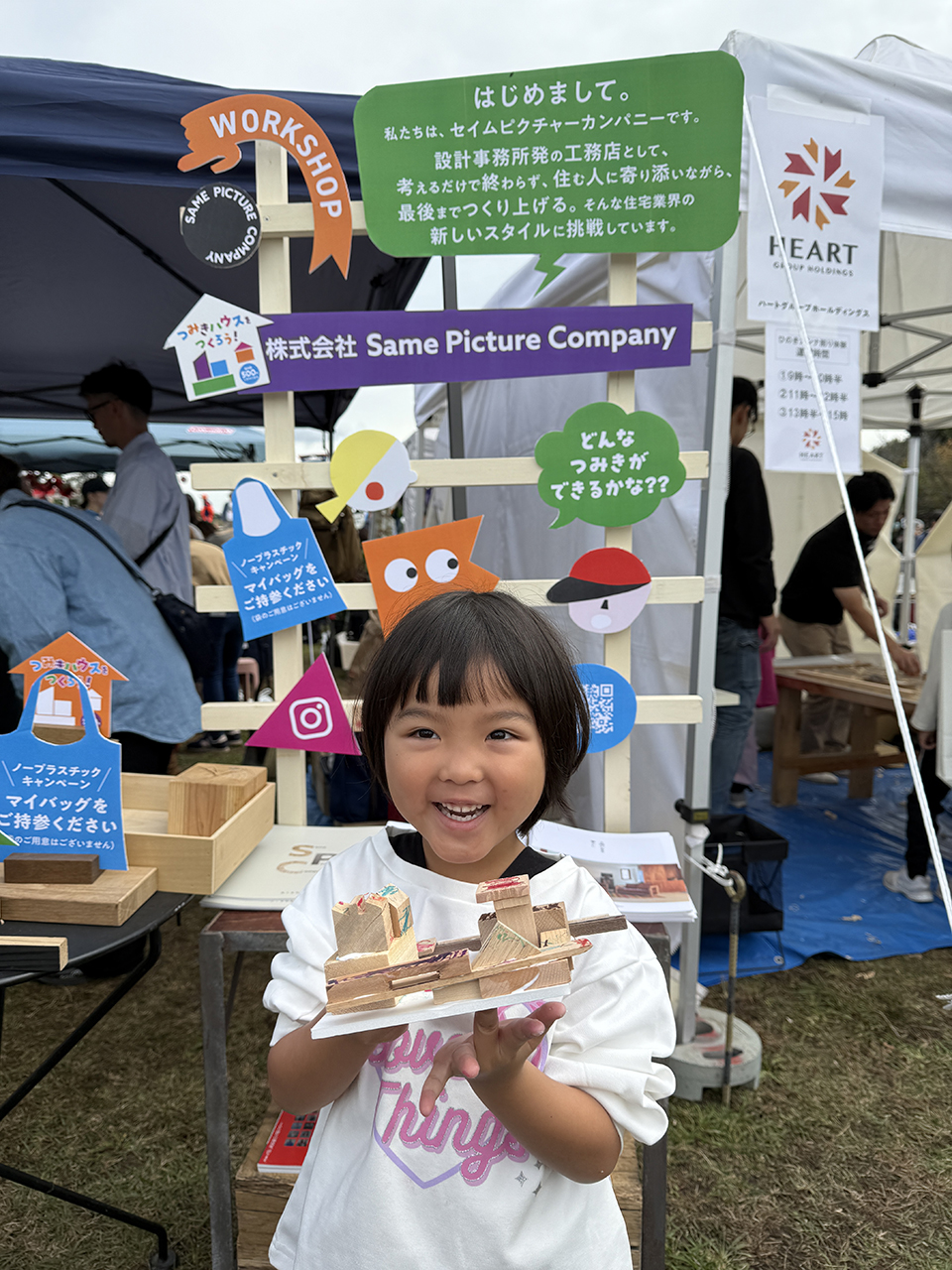 2日目もたくさんのキッズたちが参加してくれたおかげで、準備していた端材(積み木の材料)はすべて使い切り!本来なら捨てられてしまう端材が、子どもたちの手で素敵な作品へと生まれ変わりました。