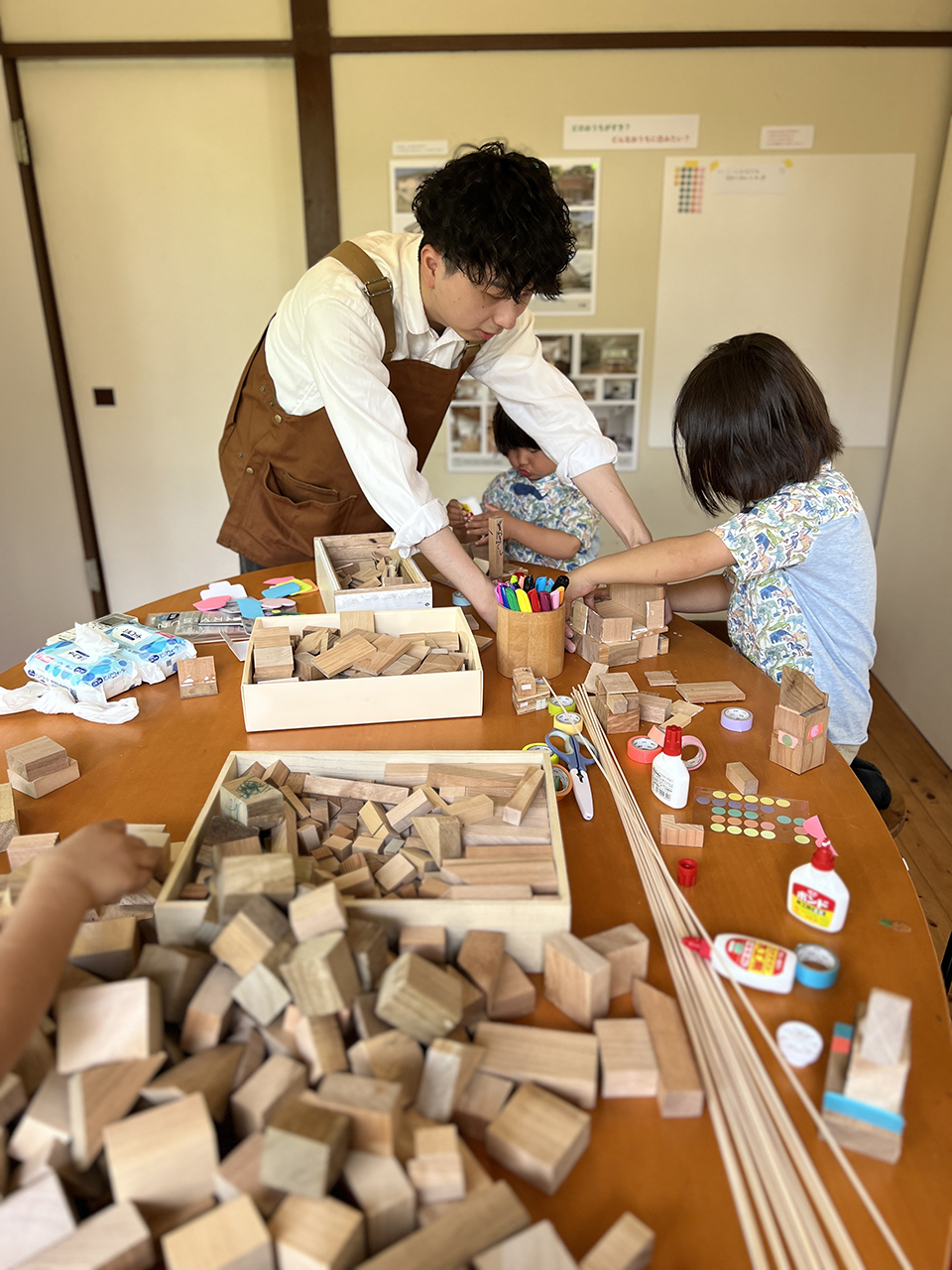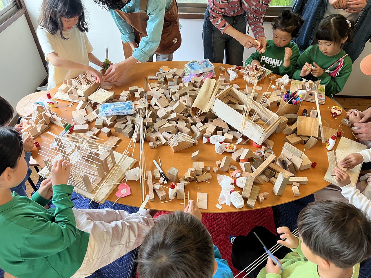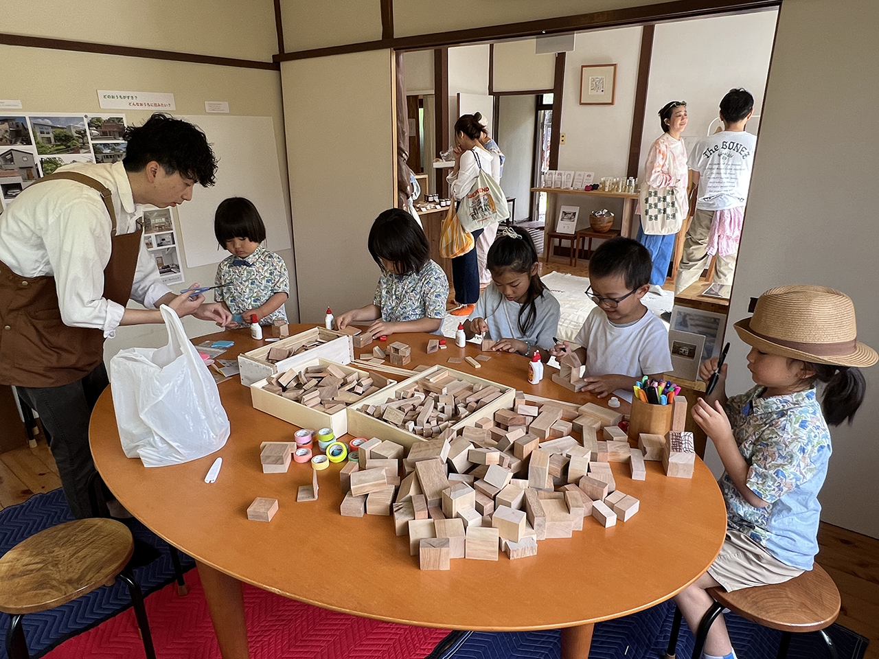 こちらは、子どもワークショップの会場の様子。今回たくさんの無垢材の端材を提供してくださった、木哲(cotetsu)さん、ご協力ありがとうございました。