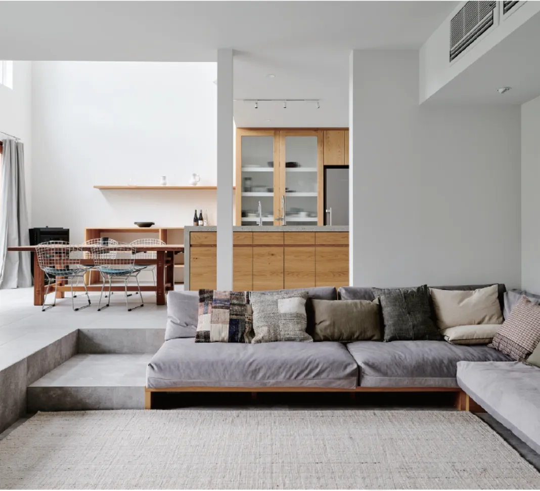 土間のある暮らしをご提案しています。かつて日本の住まいには必ずあった土間は、家の外と暮らしをつなぐ特別な空間でした。そんな土間を、例えばお子さまの遊び道具や海や山で使うアウトドア用品を収納する場所として、あるいは趣味を楽しむスペースやゆったりと寛げる特別な空間として、現代の暮らしに合わせて自由に使える空間へとアップデート。暮らしのスタイルや家族の変化に合わせて使い方を変えられる、余白のような贅沢な場所です。