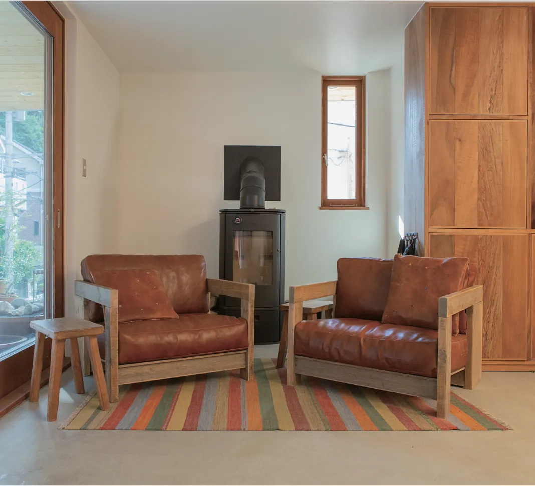 手や足はもちろん、五感で自然の温かみを感じてもらえる暮らしを提供したい。その想いから、無垢材をおすすめしています。床や天井、内壁、外壁材だけでなく建具まで。できるだけ既製品ではなく、オリジナルの無垢材をご用意します。家具も暮らしに合わせて造作します。素材となる木材は、信頼の置ける樹のプロである北海道の製材所と提携し、針葉樹だけでなく温かみのある様々な広葉樹まで、幅広いラインナップでご用意。仕入れを直接行えるので、高品質ながら価格を抑えることができます。夏は涼しく冬は暖かい無垢材なら、時間と共に変化する色や艶、刻まれるキズやへこみも家族の想い出として楽しめます。
