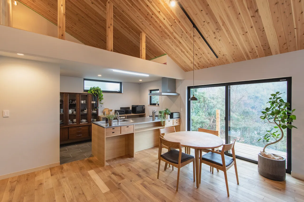 潮騒で目覚め、木洩れ陽のダイニングで朝食
