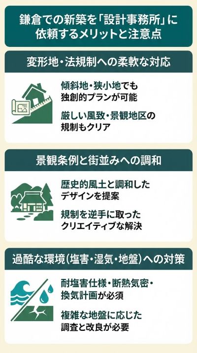 特に鎌倉という特殊な環境では、設計事務所ならではの強みが発揮される一方で、押さえるべきポイントもあります。