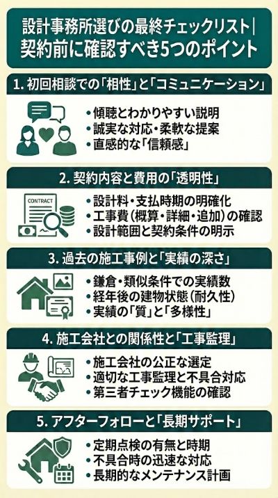 設計事務所選びの最終チェックリスト|契約前に確認すべき5つのポイント