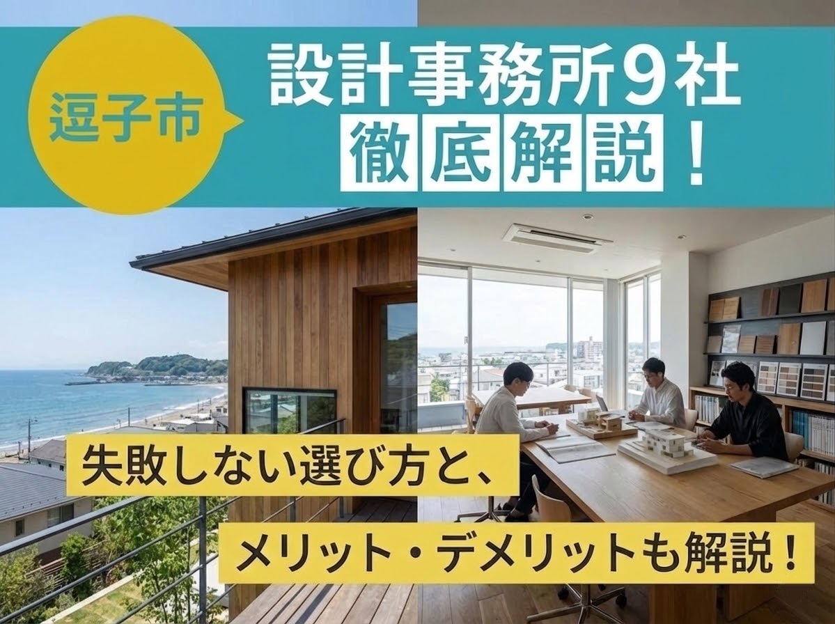 本記事では、逗子で実績のある設計事務所9社を厳選し、「デザイン」「土地活用」「性能・塩害対策」「コストバランス」の4つの視点から徹底比較します。